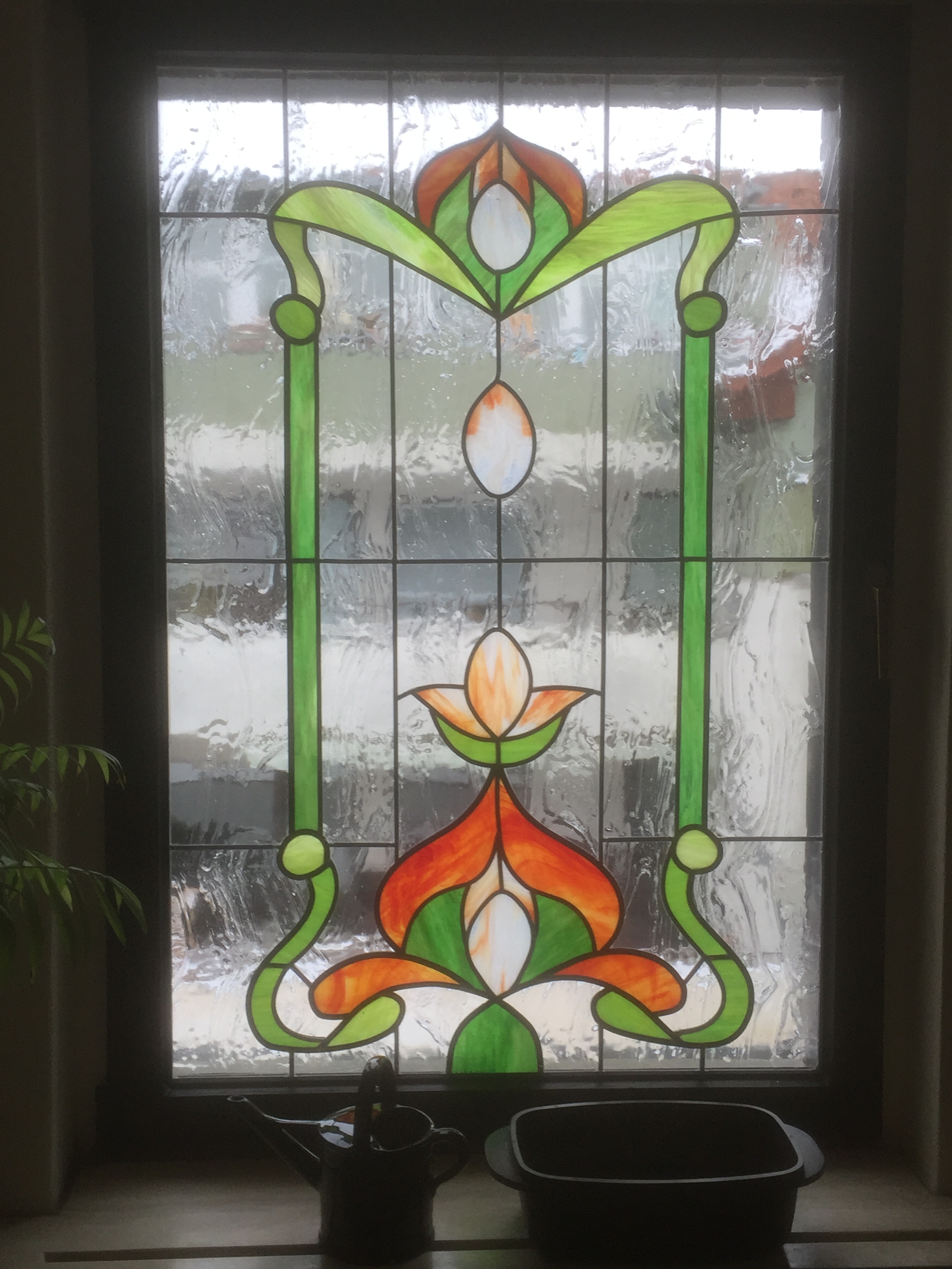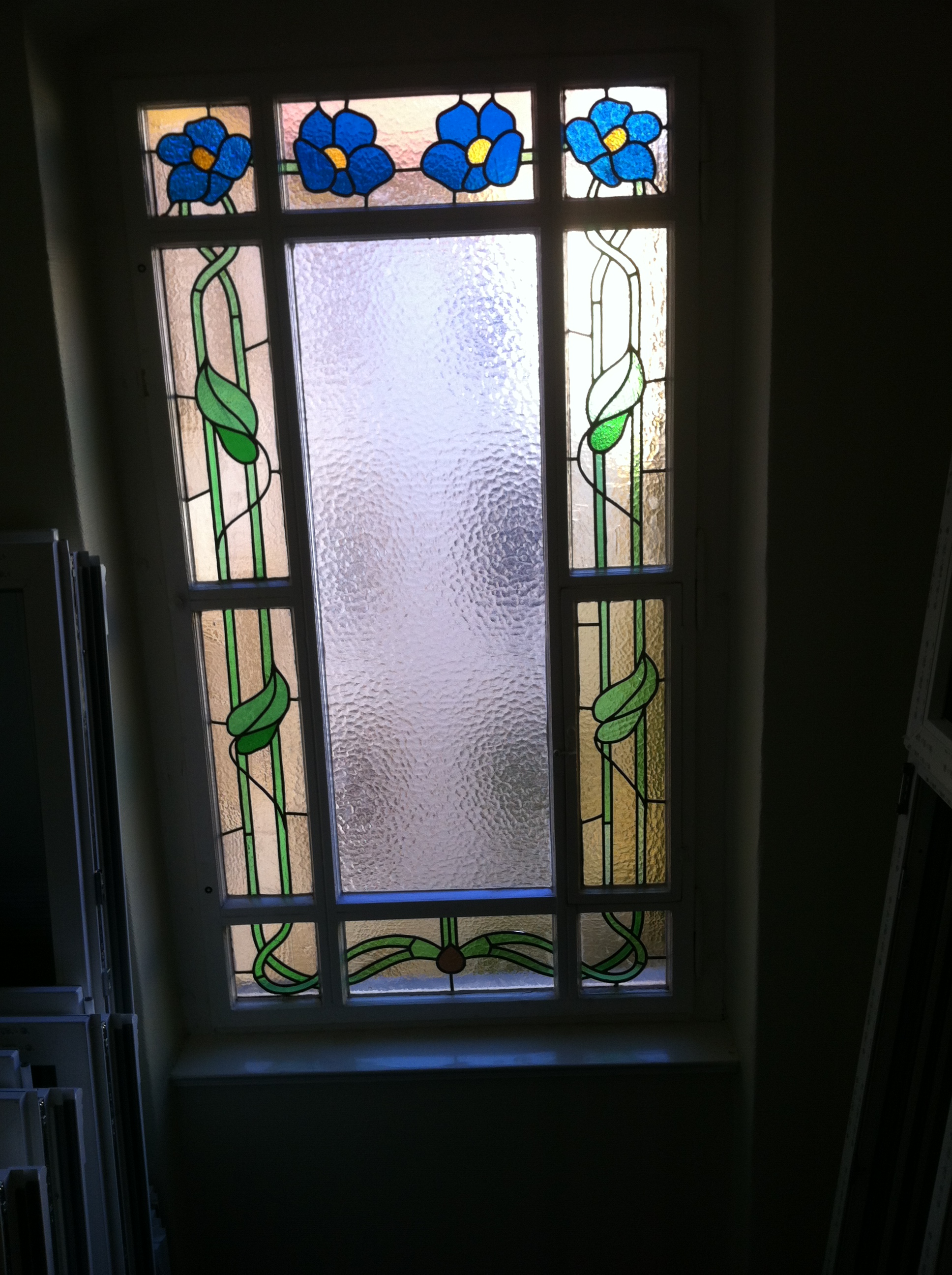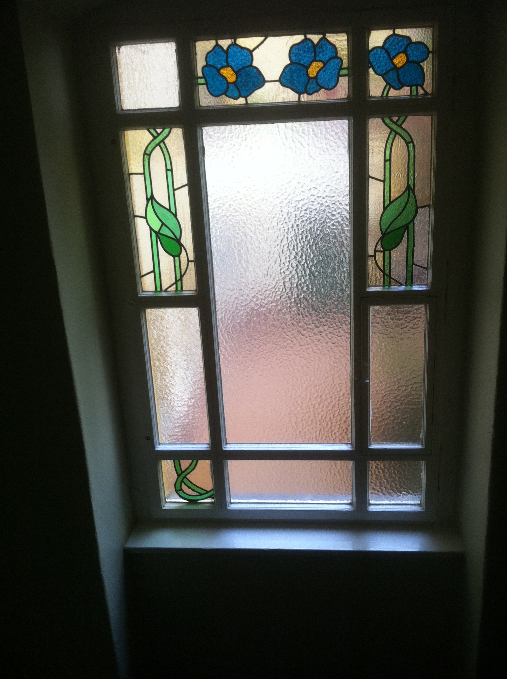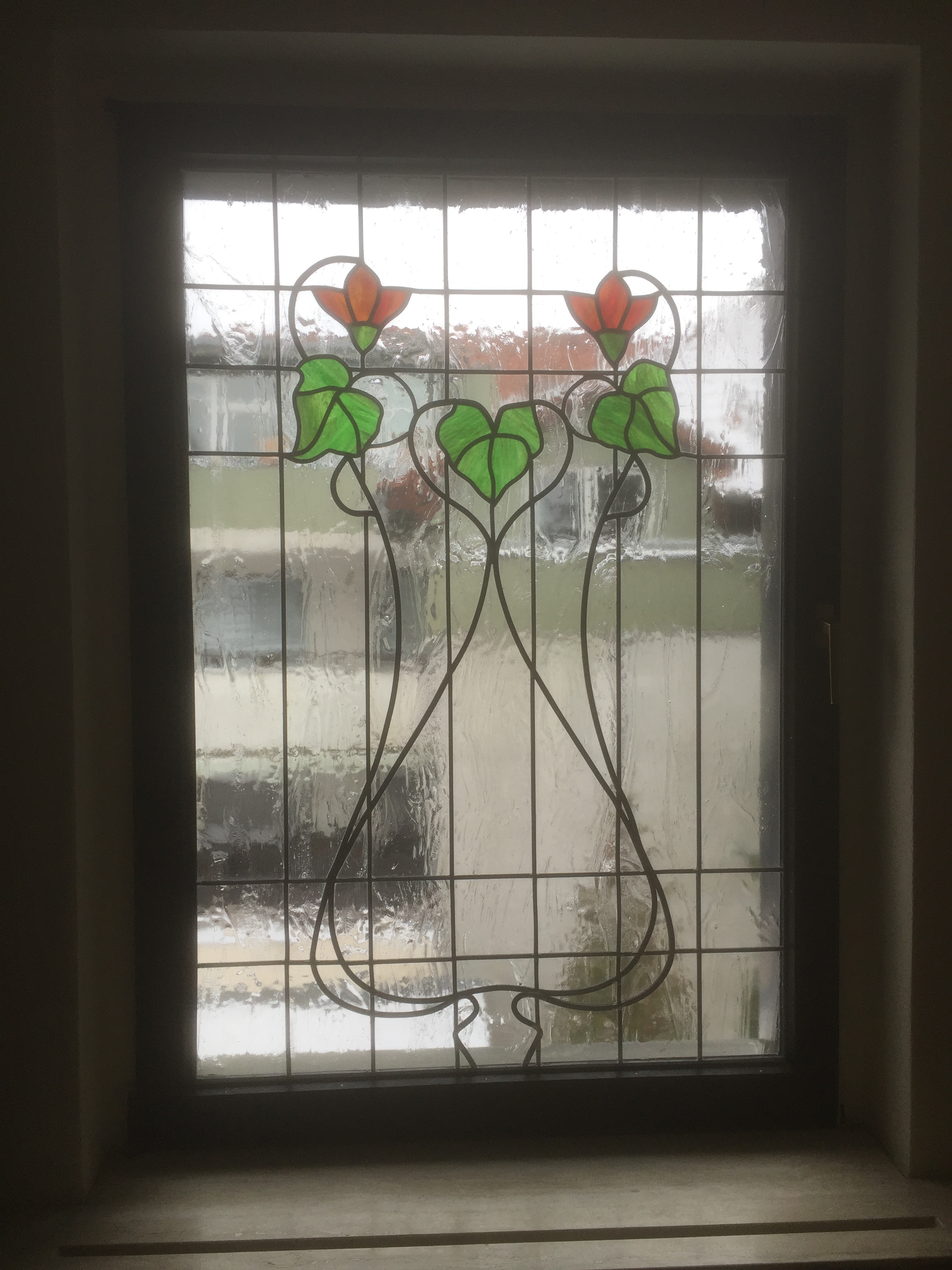 Zimmertür mit Bleiverglasung (im Jugendstil)